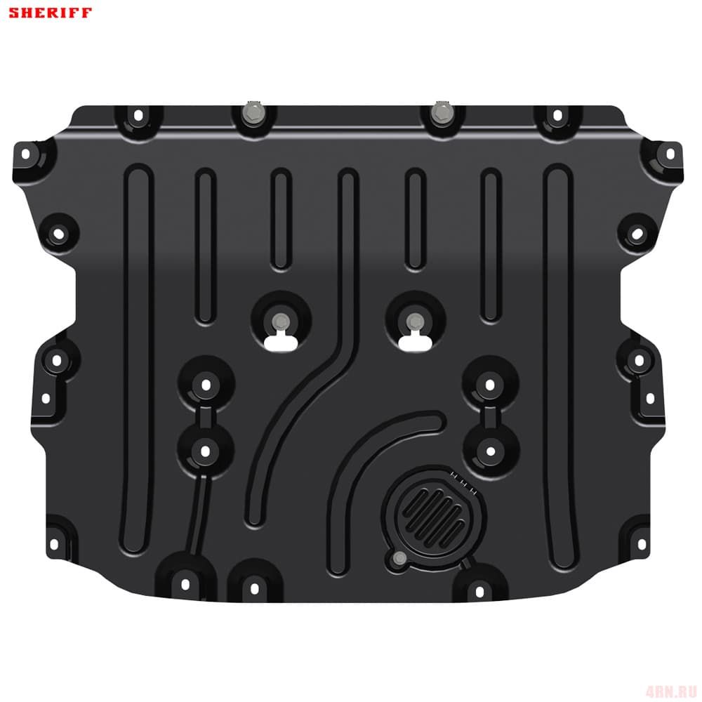Защита картера Sheriff нужна для сохранности узлов и агрегатов, находящихся на днище авто. Она надежно защитит двигательный отсек вашей машины от повреждений. Также она защищает моторный отсек от влаги, грязи, и предусматривает наличие металлических крыльев, которые выполняют функцию пыльника.