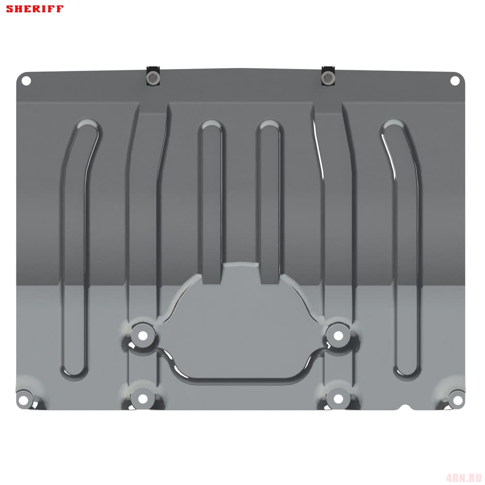 Защита картера Sheriff нужна для сохранности узлов и агрегатов, находящихся на днище авто. Она надежно защитит двигательный отсек вашего автомобиля от повреждений. Также она защищает моторный отсек от влаги и грязи, и предусматривает наличие металлических крыльев, которые выполняют функцию пыльника.