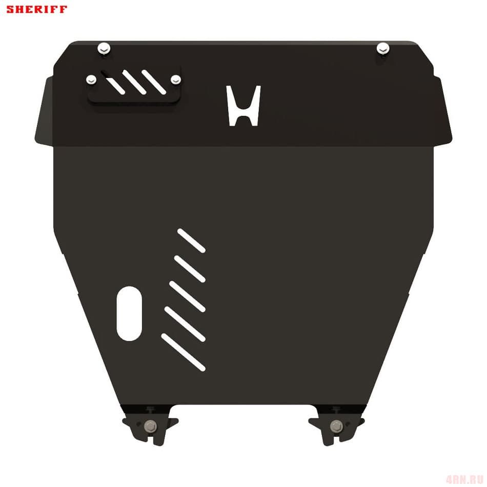 Защита картера Sheriff нужна для сохранности узлов и агрегатов, находящихся на днище авто. Она надежно защитит двигательный отсек вашей машины от повреждений. Также она защищает моторный отсек от влаги, грязи, и предусматривает наличие металлических крыльев, которые выполняют функцию пыльника.