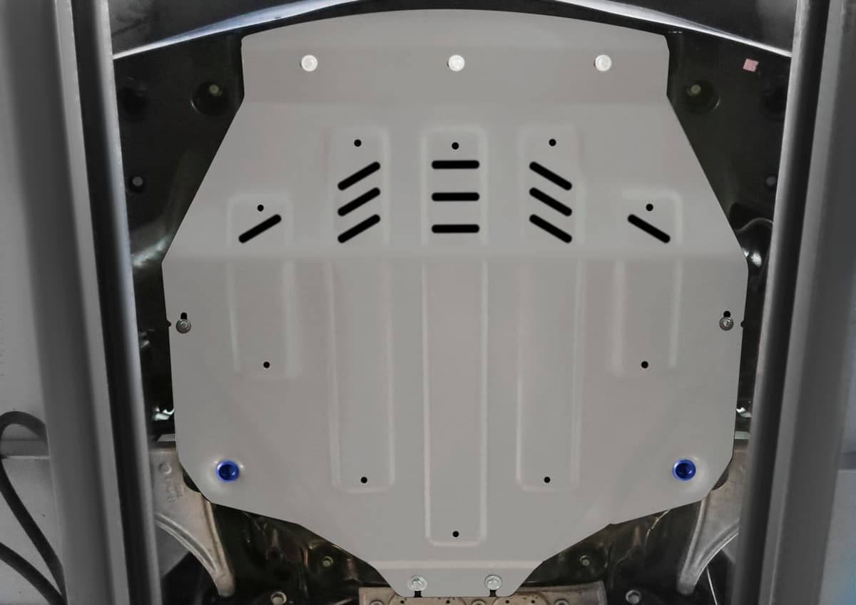 Стойкое порошковое окрашивание позволяет сохранить внешний вид, защитит от царапин, предотвратит коррозию. Также имеется утопленный крепеж для предотвращения срывов. Крепеж не образует с алюминием гальваническую пару. Защита спроектирована индивидуально для автомобиля, что позволяет устанавливать ее в штатные места без доработки кузова за 10 мин.