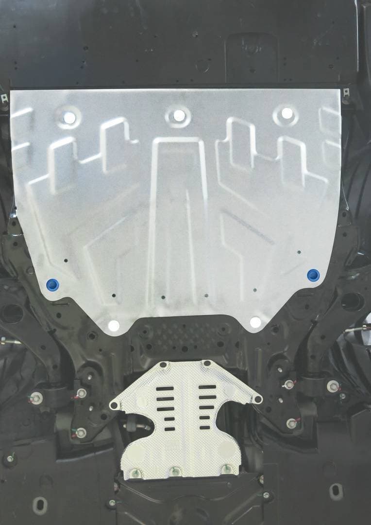Стойкое порошковое окрашивание позволяет сохранить внешний вид, защитит от царапин, предотвратит коррозию. Также имеется утопленный крепеж для предотвращения срывов. Крепеж не образует с алюминием гальваническую пару. Защита спроектирована индивидуально для автомобиля, что позволяет устанавливать ее в штатные места без доработки кузова за 10 мин.