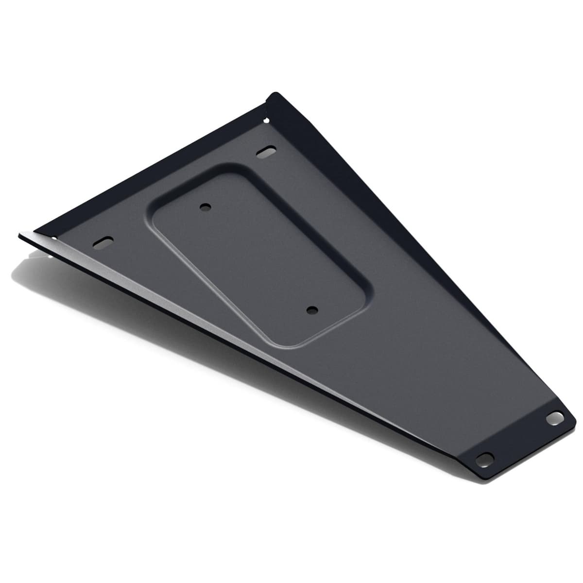 Порошковое окрашивание гарантирует долгий срок службы. А глубокий штамп увеличивает жесткость до 2,5 раз. Также имеется утопленный крепеж для предотвращения срывов. Качественная покраска защиты картера выдерживает 720 часов соляного тумана. Толщина изделия составляет 2-6 мм. Подштамповка в местах крепления предохраняет крепеж от срезания. Деталь спроектирована индивидуально для вашего автомобиля, что позволяет устанавливать ее в штатные места без доработки кузова за 10 мин.