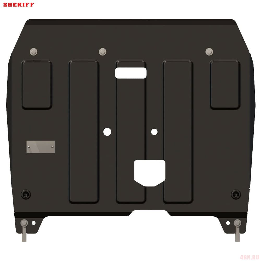 Защита картера Sheriff нужна для сохранности узлов и агрегатов, находящихся на днище авто. Она надежно защитит двигательный отсек вашей машины от повреждений. Также она защищает моторный отсек от влаги, грязи, и предусматривает наличие металлических крыльев, которые выполняют функцию пыльника.