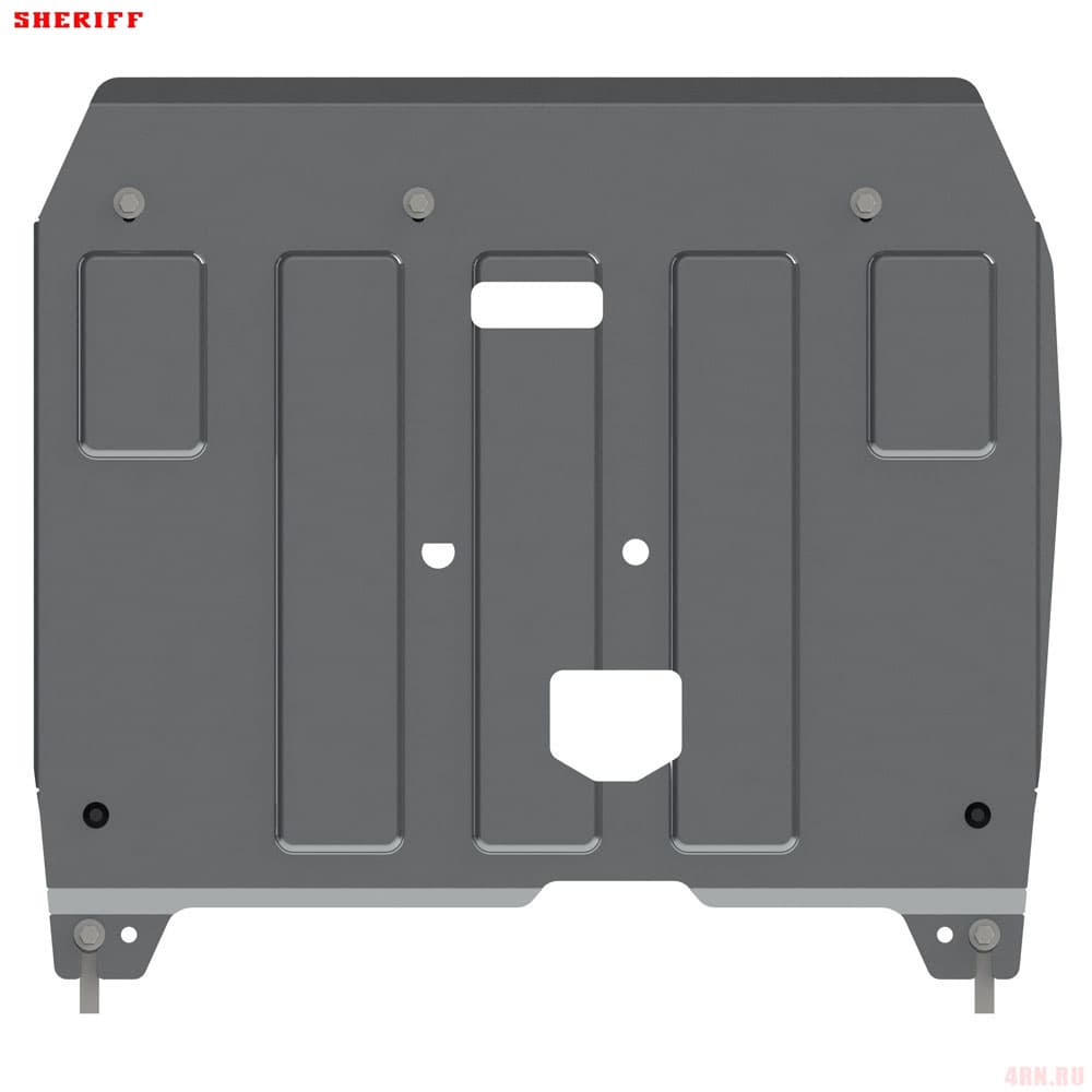 Защита картера Sheriff нужна для сохранности узлов и агрегатов, находящихся на днище авто. Она надежно защитит двигательный отсек вашего автомобиля от повреждений. Также она защищает моторный отсек от влаги и грязи, и предусматривает наличие металлических крыльев, которые выполняют функцию пыльника.