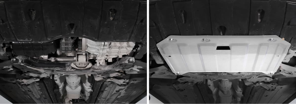 Стойкое порошковое окрашивание позволяет сохранить внешний вид, защитит от царапин, предотвратит коррозию. Также имеется утопленный крепеж для предотвращения срывов. Крепеж не образует с алюминием гальваническую пару. Защита спроектирована индивидуально для автомобиля, что позволяет устанавливать ее в штатные места без доработки кузова за 10 мин.