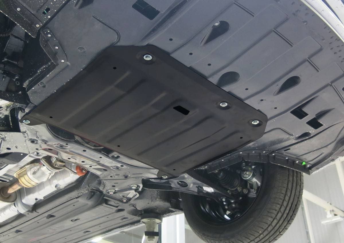 Порошковое окрашивание гарантирует долгий срок службы. А глубокий штамп увеличивает жесткость до 2,5 раз. Также имеется утопленный крепеж для предотвращения срывов. Качественная покраска защиты картера выдерживает 720 часов соляного тумана. Толщина изделия составляет 2-6 мм. Подштамповка в местах крепления предохраняет крепеж от срезания. Деталь спроектирована индивидуально для вашего автомобиля, что позволяет устанавливать ее в штатные места без доработки кузова за 10 мин.