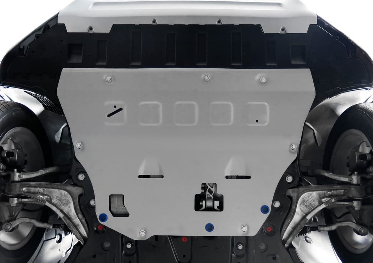 Стойкое порошковое окрашивание позволяет сохранить внешний вид, защитит от царапин, предотвратит коррозию. Также имеется утопленный крепеж для предотвращения срывов. Крепеж не образует с алюминием гальваническую пару. Защита спроектирована индивидуально для автомобиля, что позволяет устанавливать ее в штатные места без доработки кузова за 10 мин.