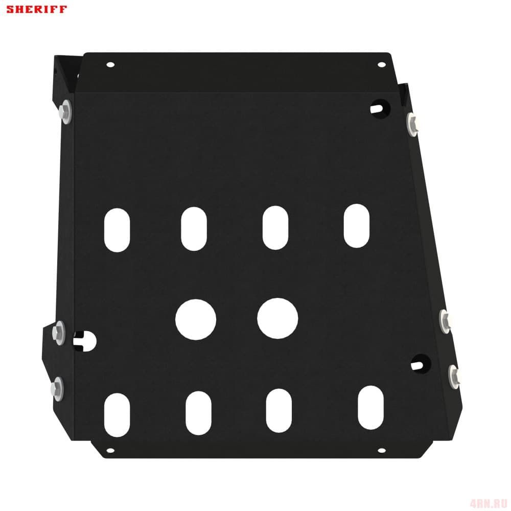 Защита картера Sheriff нужна для сохранности узлов и агрегатов, находящихся на днище авто. Она надежно защитит двигательный отсек вашей машины от повреждений. Также она защищает моторный отсек от влаги, грязи, и предусматривает наличие металлических крыльев, которые выполняют функцию пыльника.
