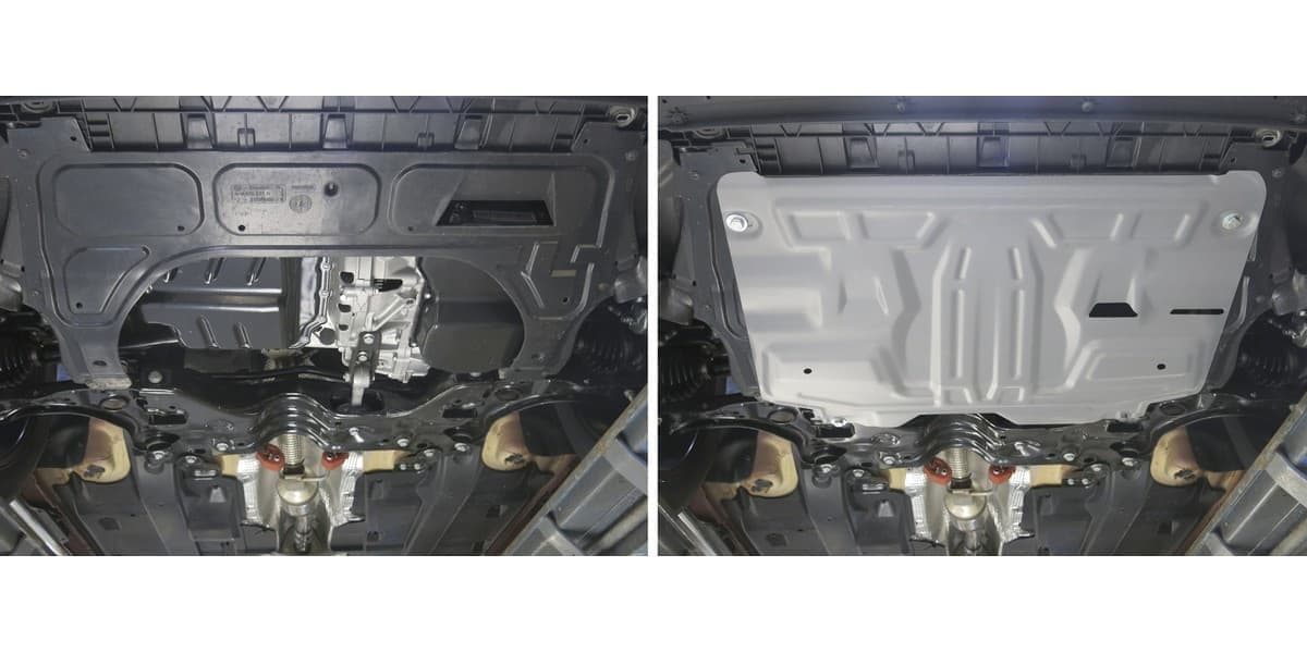 Защита картера и КПП артикул № AM333.5842.1 от российского производителя AutoMax. Разработана специально для авто Skoda Rapid I (2012-2020).