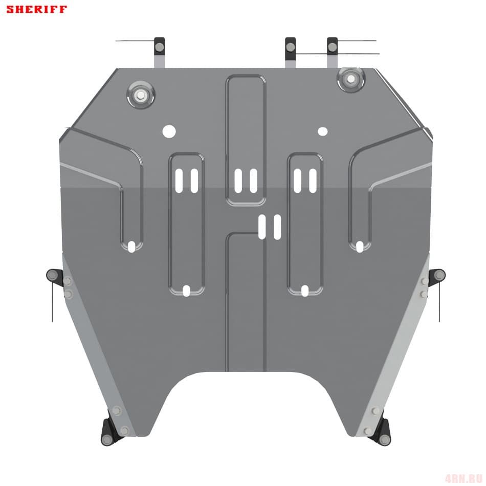 Защита картера Sheriff нужна для сохранности узлов и агрегатов, находящихся на днище авто. Она надежно защитит двигательный отсек вашего автомобиля от повреждений. Также она защищает моторный отсек от влаги и грязи, и предусматривает наличие металлических крыльев, которые выполняют функцию пыльника.