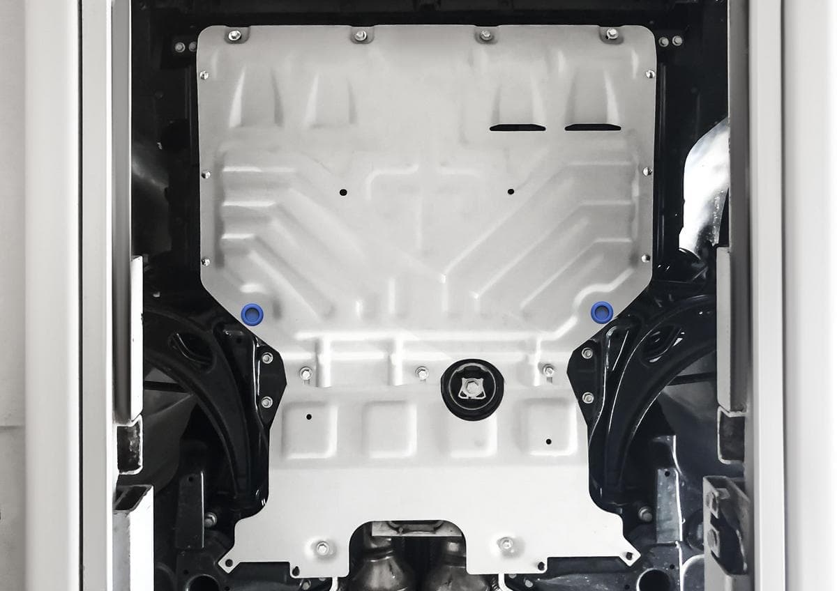 Стойкое порошковое окрашивание позволяет сохранить внешний вид, защитит от царапин, предотвратит коррозию. Также имеется утопленный крепеж для предотвращения срывов. Крепеж не образует с алюминием гальваническую пару. Защита спроектирована индивидуально для автомобиля, что позволяет устанавливать ее в штатные места без доработки кузова за 10 мин.