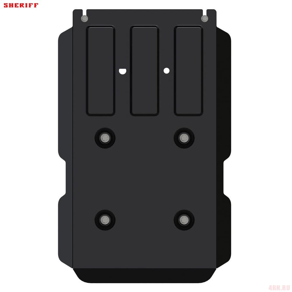 Защита картера Sheriff нужна для сохранности узлов и агрегатов, находящихся на днище авто. Она надежно защитит двигательный отсек вашей машины от повреждений. Также она защищает моторный отсек от влаги, грязи, и предусматривает наличие металлических крыльев, которые выполняют функцию пыльника.