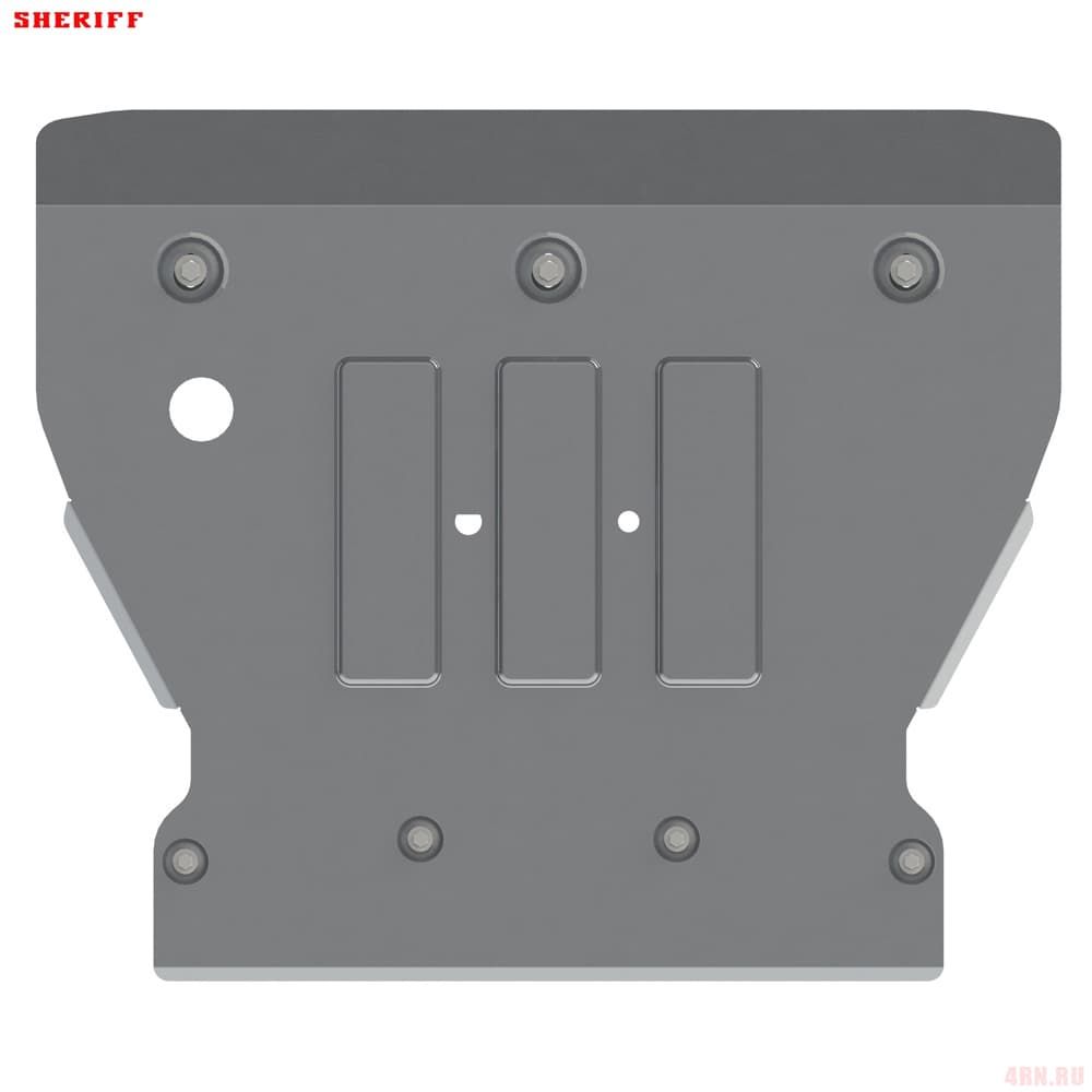 Защита картера Sheriff нужна для сохранности узлов и агрегатов, находящихся на днище авто. Она надежно защитит двигательный отсек вашего автомобиля от повреждений. Также она защищает моторный отсек от влаги и грязи, и предусматривает наличие металлических крыльев, которые выполняют функцию пыльника.