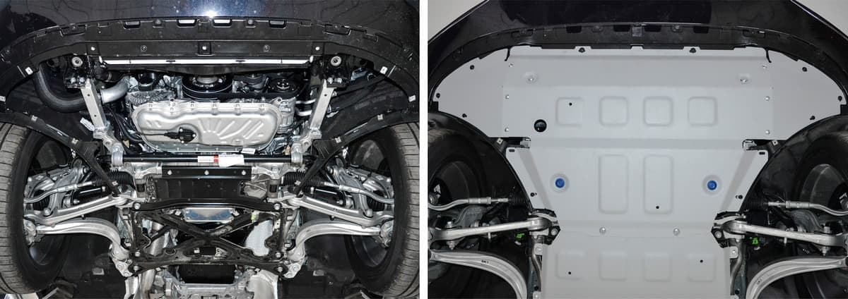 Защита проектируется при помощи лазерного 3D сканирования, с учетом особенностей днища автомобиля. Она не уменьшает клиренс и сохраняет другие штатные параметры.