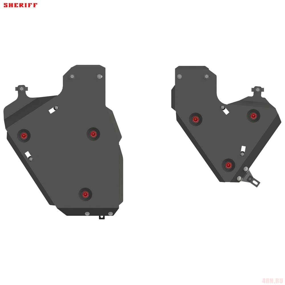 Защита картера Sheriff нужна для сохранности узлов и агрегатов, находящихся на днище авто. Она надежно защитит двигательный отсек вашей машины от повреждений. Также она защищает моторный отсек от влаги, грязи, и предусматривает наличие металлических крыльев, которые выполняют функцию пыльника.