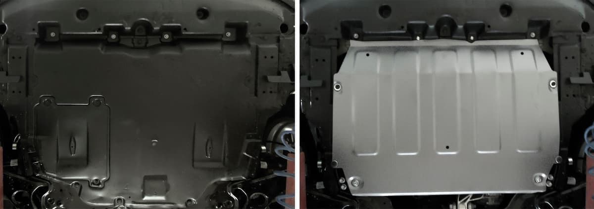 Стойкое порошковое окрашивание позволяет сохранить внешний вид, защитит от царапин, предотвратит коррозию. Также имеется утопленный крепеж для предотвращения срывов. Крепеж не образует с алюминием гальваническую пару. Защита спроектирована индивидуально для автомобиля, что позволяет устанавливать ее в штатные места без доработки кузова за 10 мин.