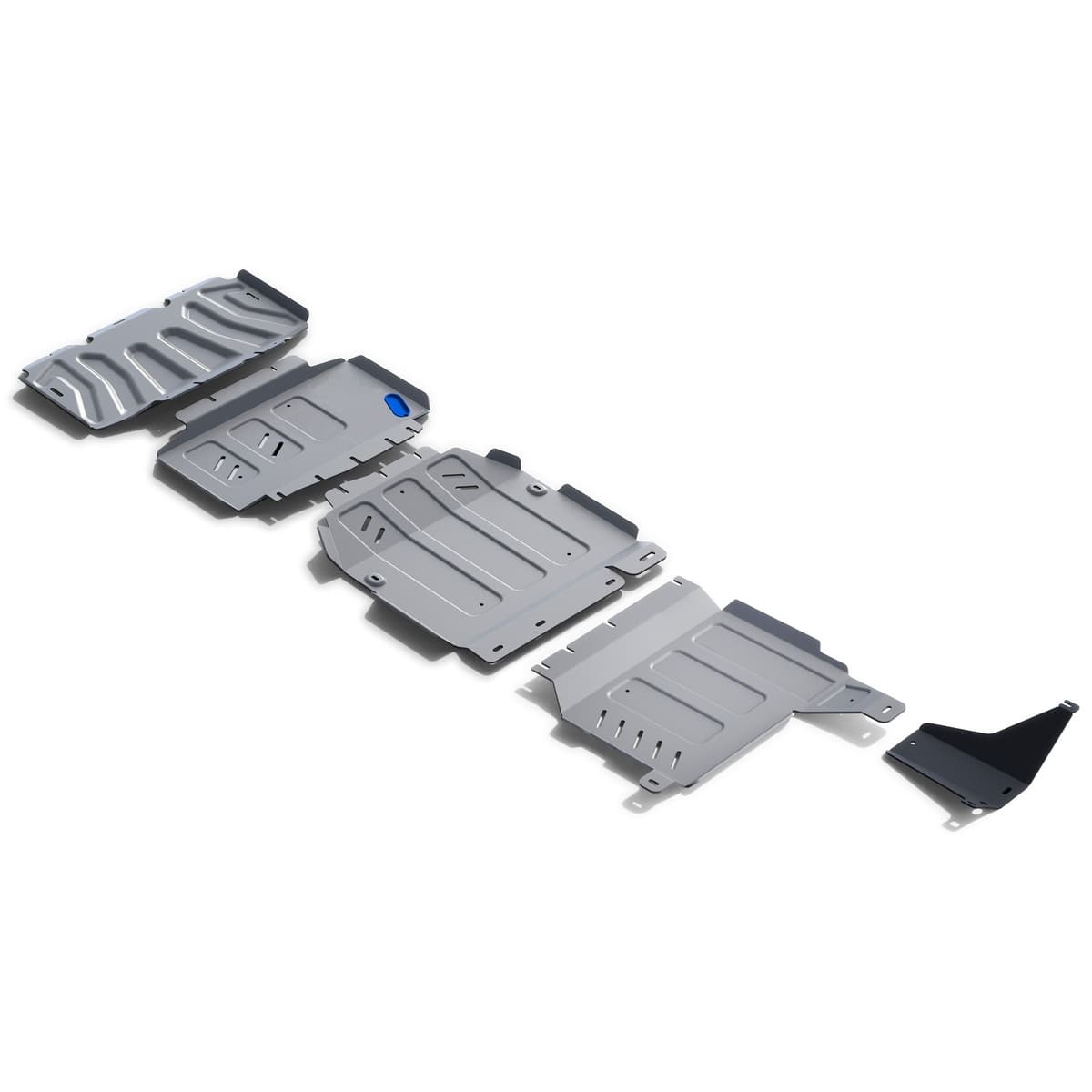 Стойкое порошковое окрашивание позволяет сохранить внешний вид, защитит от царапин, предотвратит коррозию. Также имеется утопленный крепеж для предотвращения срывов. Крепеж не образует с алюминием гальваническую пару. Защита спроектирована индивидуально для автомобиля, что позволяет устанавливать ее в штатные места без доработки кузова за 10 мин.