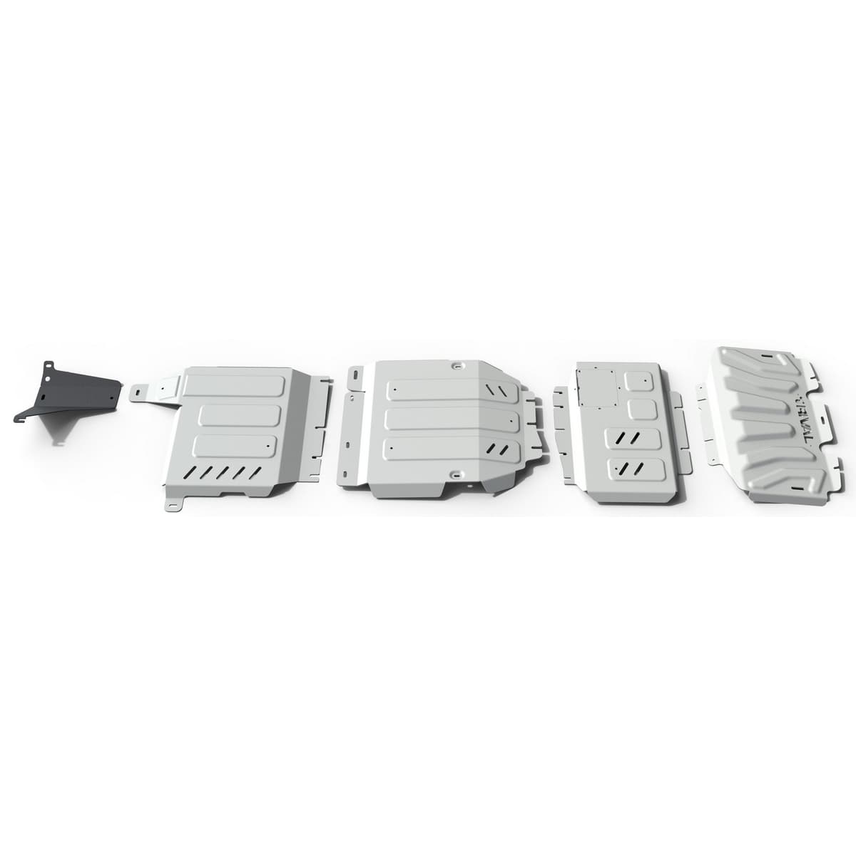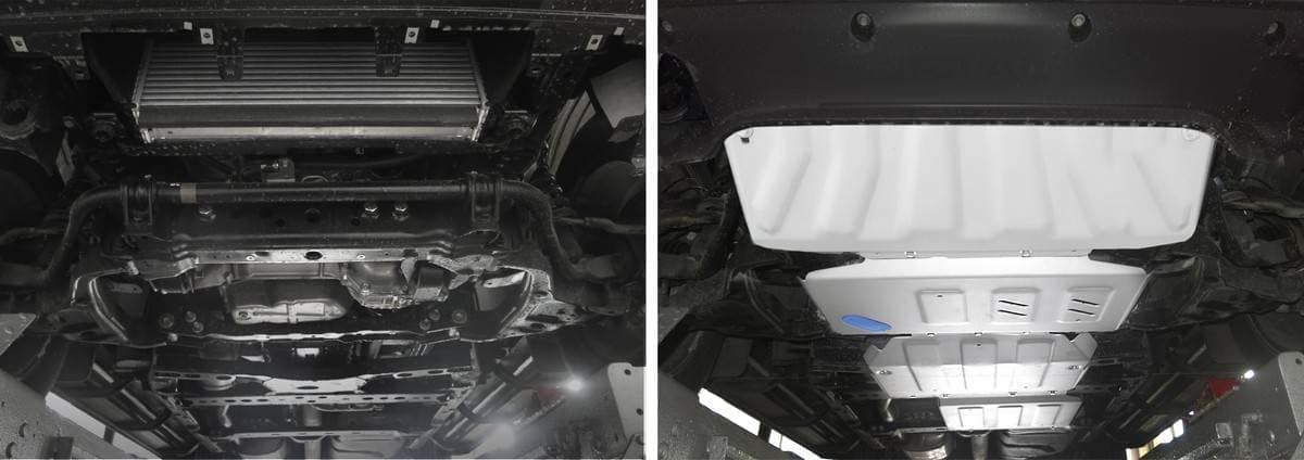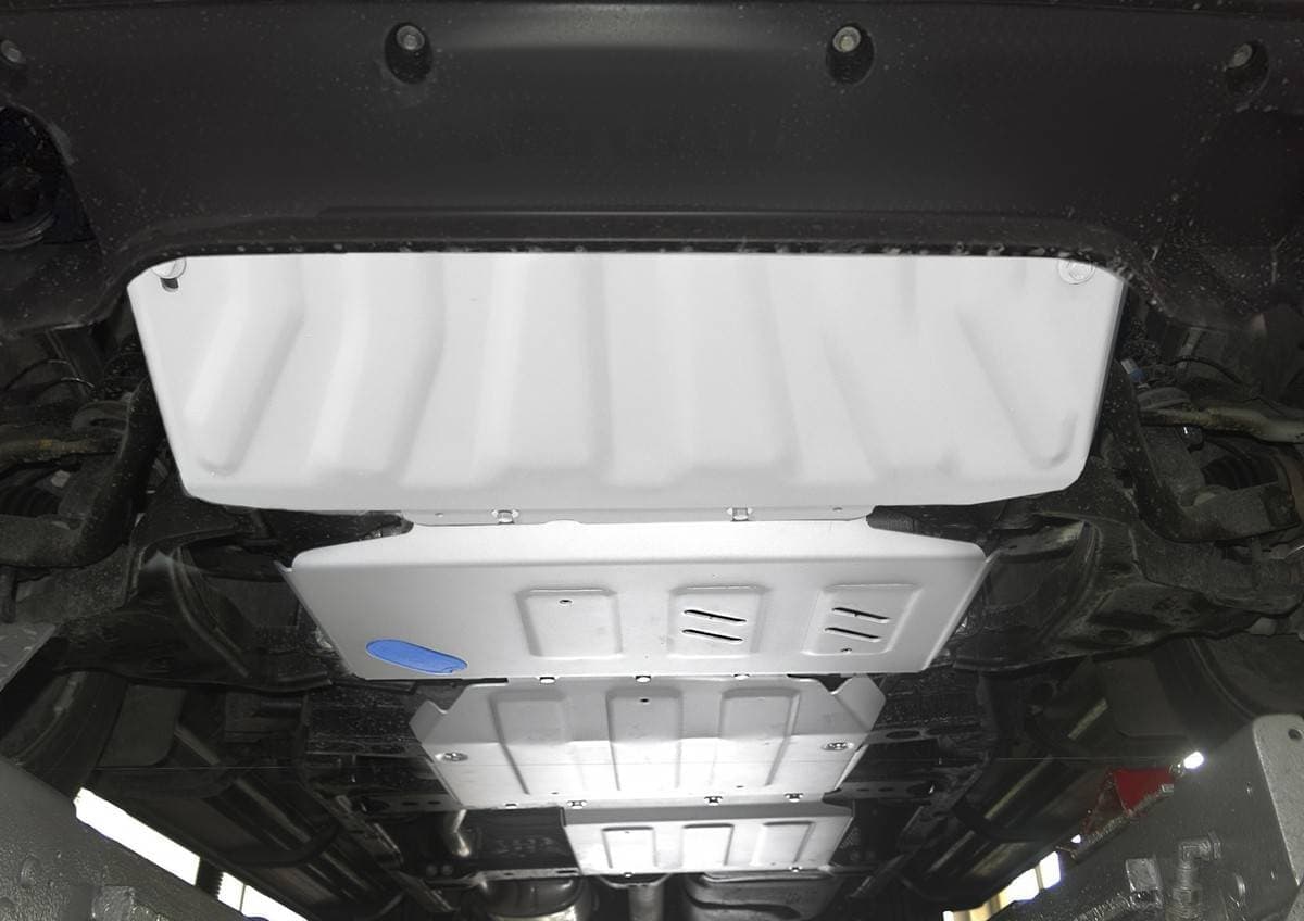 Стойкое порошковое окрашивание позволяет сохранить внешний вид, защитит от царапин, предотвратит коррозию. Также имеется утопленный крепеж для предотвращения срывов. Крепеж не образует с алюминием гальваническую пару. Защита спроектирована индивидуально для автомобиля, что позволяет устанавливать ее в штатные места без доработки кузова за 10 мин.