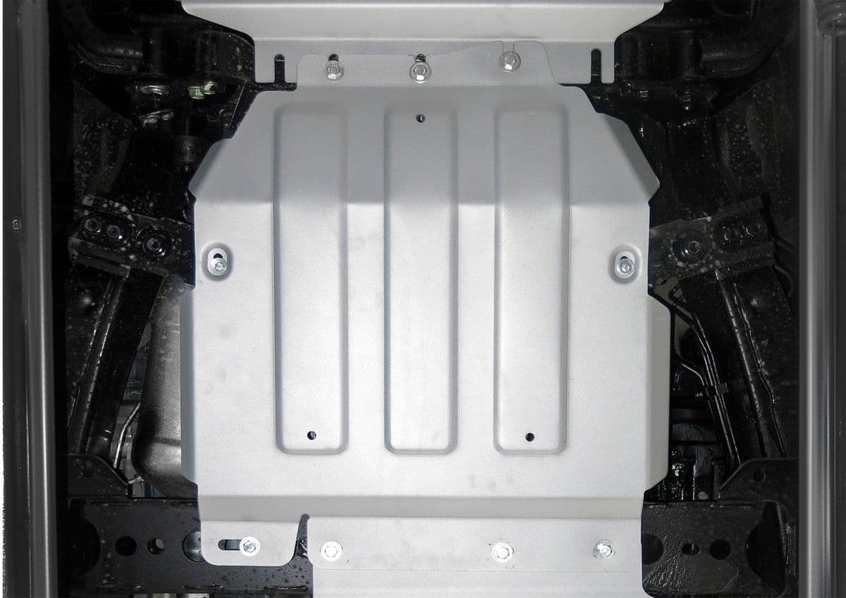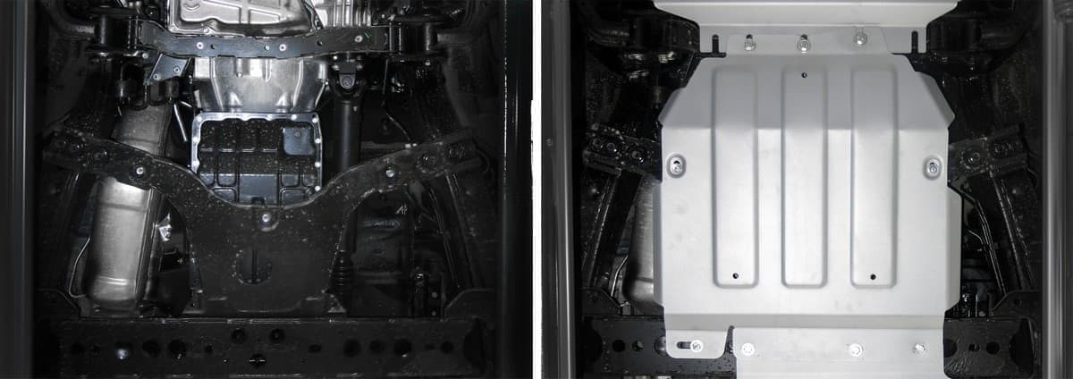 Стойкое порошковое окрашивание позволяет сохранить внешний вид, защитит от царапин, предотвратит коррозию. Также имеется утопленный крепеж для предотвращения срывов. Крепеж не образует с алюминием гальваническую пару. Защита спроектирована индивидуально для автомобиля, что позволяет устанавливать ее в штатные места без доработки кузова за 10 мин.