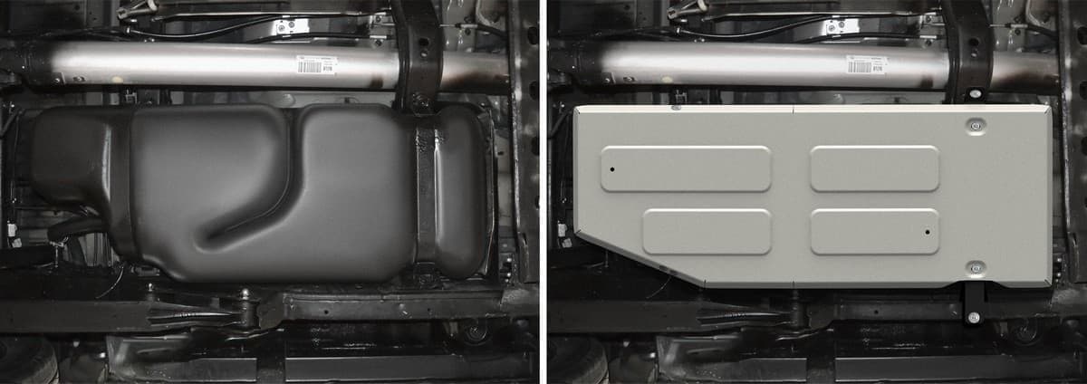 Стойкое порошковое окрашивание позволяет сохранить внешний вид, защитит от царапин, предотвратит коррозию. Также имеется утопленный крепеж для предотвращения срывов. Крепеж не образует с алюминием гальваническую пару. Защита спроектирована индивидуально для автомобиля, что позволяет устанавливать ее в штатные места без доработки кузова за 10 мин.