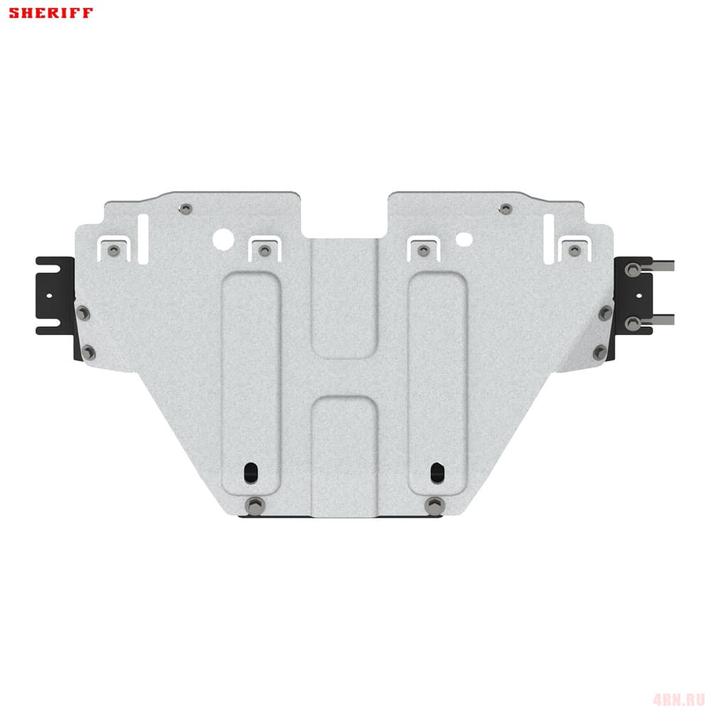 Защита картера Sheriff нужна для сохранности узлов и агрегатов, находящихся на днище авто. Она надежно защитит двигательный отсек вашего автомобиля от повреждений. Также она защищает моторный отсек от влаги и грязи, и предусматривает наличие металлических крыльев, которые выполняют функцию пыльника.