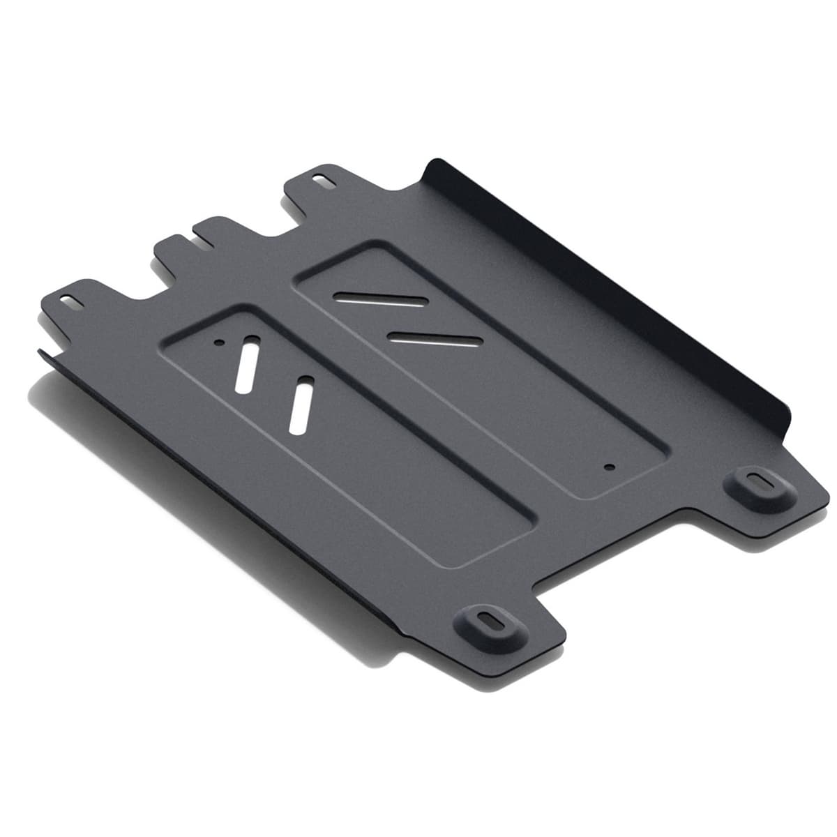 Порошковое окрашивание гарантирует долгий срок службы. А глубокий штамп увеличивает жесткость до 2,5 раз. Также имеется утопленный крепеж для предотвращения срывов. Качественная покраска защиты картера выдерживает 720 часов соляного тумана. Толщина изделия составляет 2-6 мм. Подштамповка в местах крепления предохраняет крепеж от срезания. Деталь спроектирована индивидуально для вашего автомобиля, что позволяет устанавливать ее в штатные места без доработки кузова за 10 мин.
