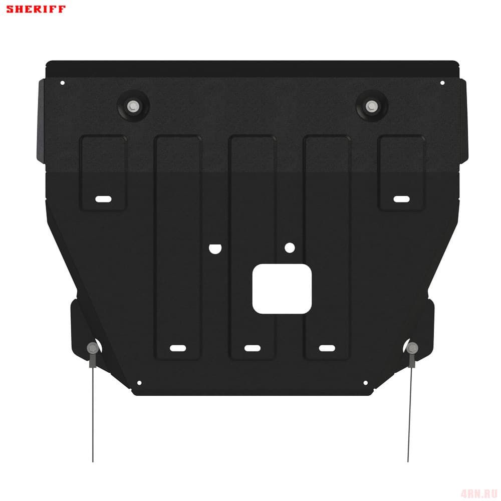 Защита картера Sheriff нужна для сохранности узлов и агрегатов, находящихся на днище авто. Она надежно защитит двигательный отсек вашей машины от повреждений. Также она защищает моторный отсек от влаги, грязи, и предусматривает наличие металлических крыльев, которые выполняют функцию пыльника.