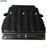 Порошковое окрашивание гарантирует долгий срок службы. А глубокий штамп увеличивает жесткость до 2,5 раз. Также имеется утопленный крепеж для предотвращения срывов. Качественная покраска защиты картера выдерживает 720 часов соляного тумана. Толщина изделия составляет 2-6 мм. Подштамповка в местах крепления предохраняет крепеж от срезания. Деталь спроектирована индивидуально для вашего автомобиля, что позволяет устанавливать ее в штатные места без доработки кузова за 10 мин.