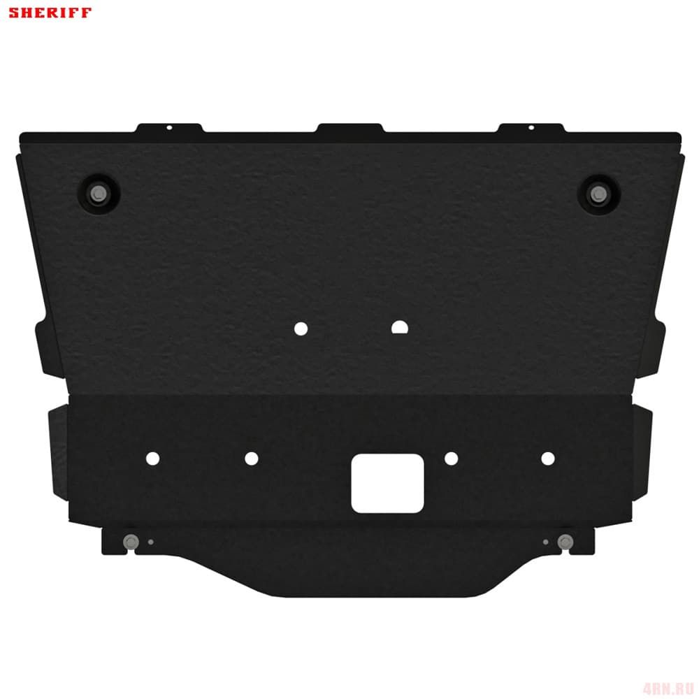 Защита картера Sheriff нужна для сохранности узлов и агрегатов, находящихся на днище авто. Она надежно защитит двигательный отсек вашей машины от повреждений. Также она защищает моторный отсек от влаги, грязи, и предусматривает наличие металлических крыльев, которые выполняют функцию пыльника.