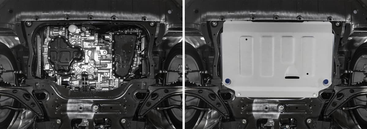 Стойкое порошковое окрашивание позволяет сохранить внешний вид, защитит от царапин, предотвратит коррозию. Также имеется утопленный крепеж для предотвращения срывов. Крепеж не образует с алюминием гальваническую пару. Защита спроектирована индивидуально для автомобиля, что позволяет устанавливать ее в штатные места без доработки кузова за 10 мин.