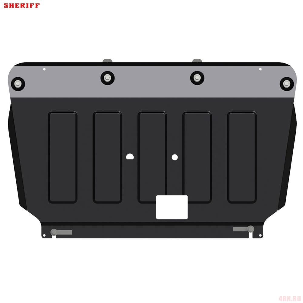 Защита картера Sheriff нужна для сохранности узлов и агрегатов, находящихся на днище авто. Она надежно защитит двигательный отсек вашей машины от повреждений. Также она защищает моторный отсек от влаги, грязи, и предусматривает наличие металлических крыльев, которые выполняют функцию пыльника.