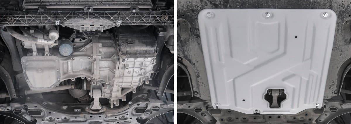 Стойкое порошковое окрашивание позволяет сохранить внешний вид, защитит от царапин, предотвратит коррозию. Также имеется утопленный крепеж для предотвращения срывов. Крепеж не образует с алюминием гальваническую пару. Защита спроектирована индивидуально для автомобиля, что позволяет устанавливать ее в штатные места без доработки кузова за 10 мин.