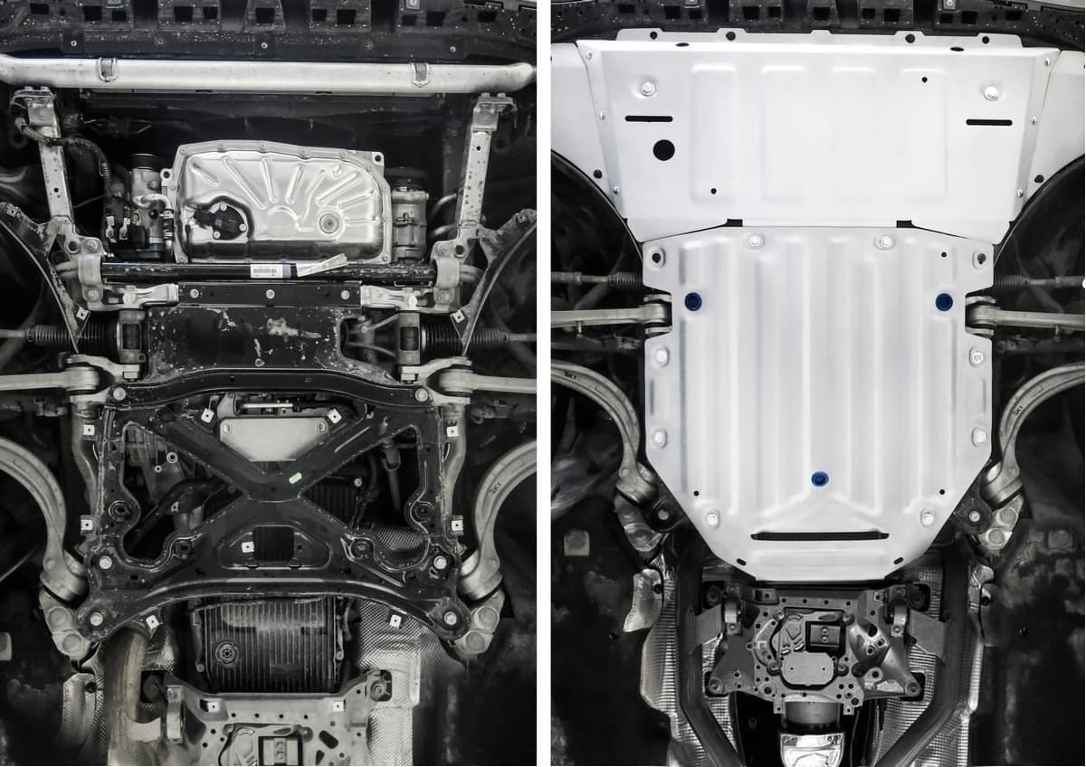Стойкое порошковое окрашивание позволяет сохранить внешний вид, защитит от царапин, предотвратит коррозию. Также имеется утопленный крепеж для предотвращения срывов. Крепеж не образует с алюминием гальваническую пару. Защита спроектирована индивидуально для автомобиля, что позволяет устанавливать ее в штатные места без доработки кузова за 10 мин.