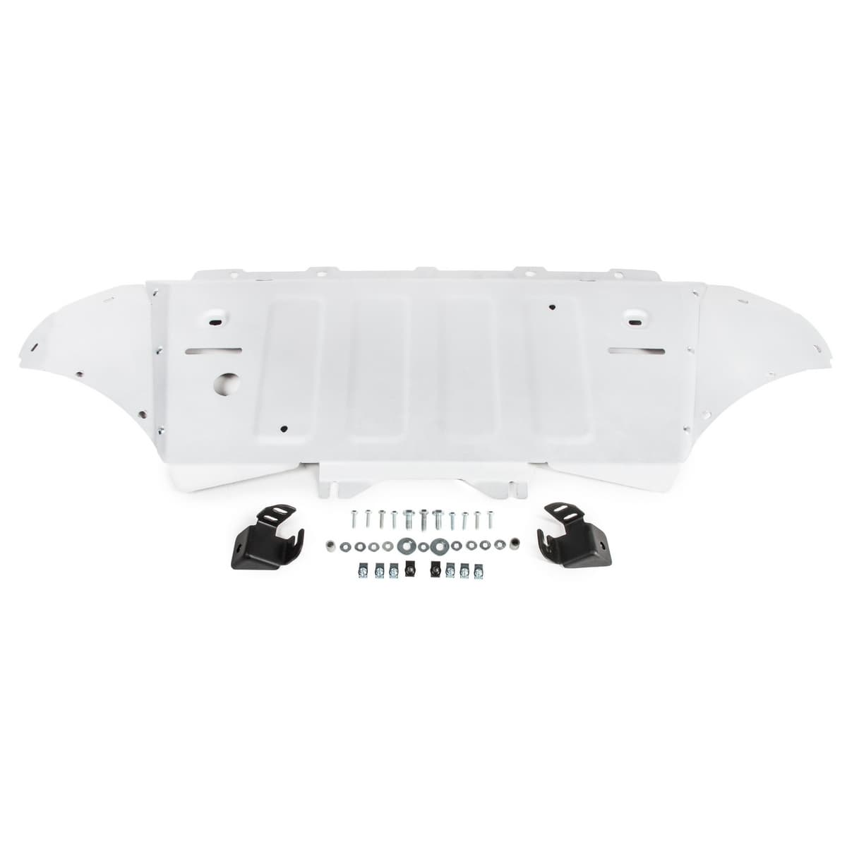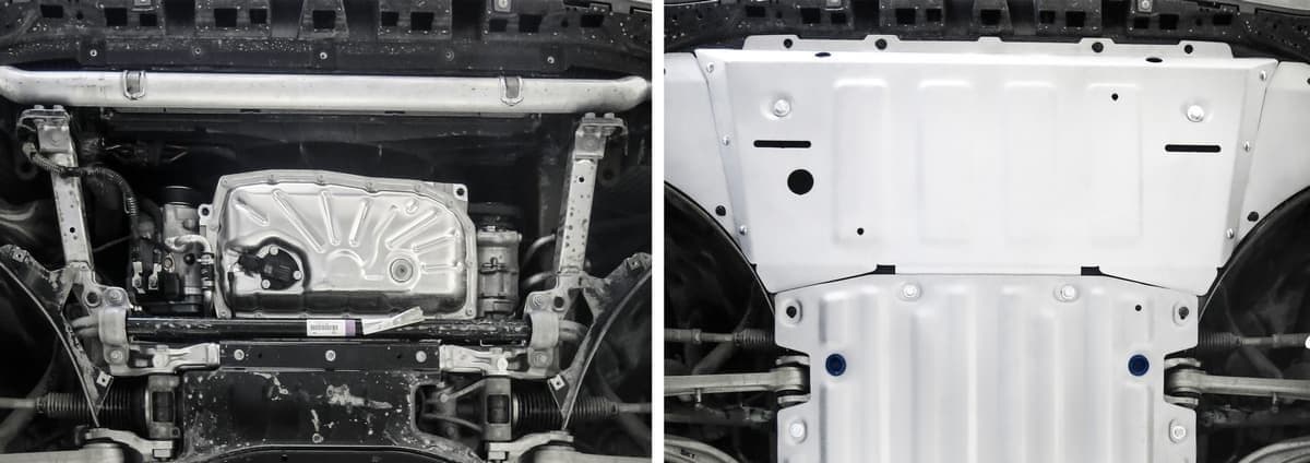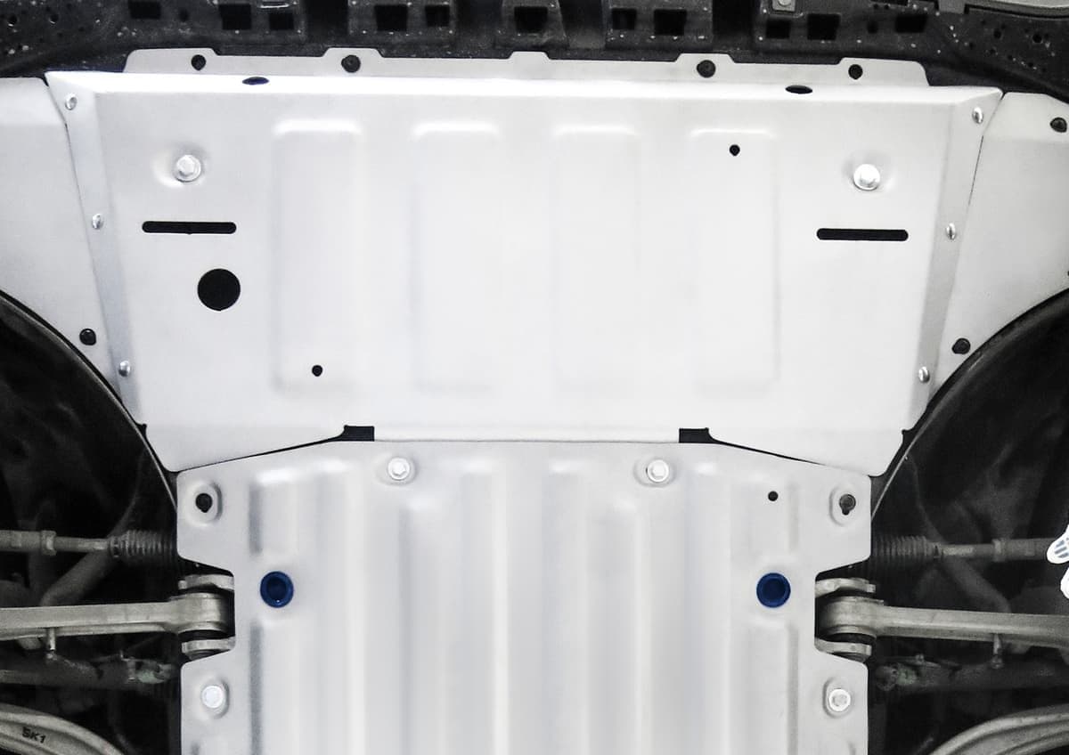 Стойкое порошковое окрашивание позволяет сохранить внешний вид, защитит от царапин, предотвратит коррозию. Также имеется утопленный крепеж для предотвращения срывов. Крепеж не образует с алюминием гальваническую пару. Защита спроектирована индивидуально для автомобиля, что позволяет устанавливать ее в штатные места без доработки кузова за 10 мин.
