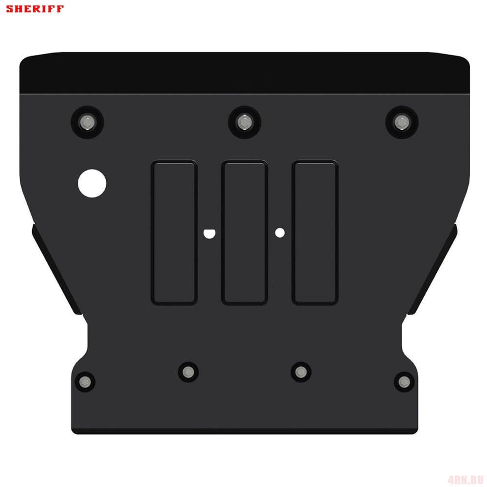Защита картера Sheriff нужна для сохранности узлов и агрегатов, находящихся на днище авто. Она надежно защитит двигательный отсек вашей машины от повреждений. Также она защищает моторный отсек от влаги, грязи, и предусматривает наличие металлических крыльев, которые выполняют функцию пыльника.
