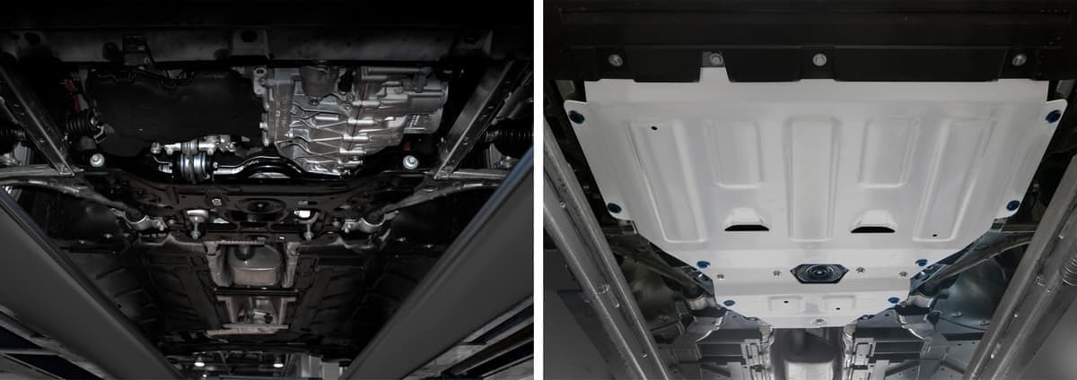 Защита проектируется при помощи лазерного 3D сканирования, с учетом особенностей днища автомобиля. Она не уменьшает клиренс и сохраняет другие штатные параметры.