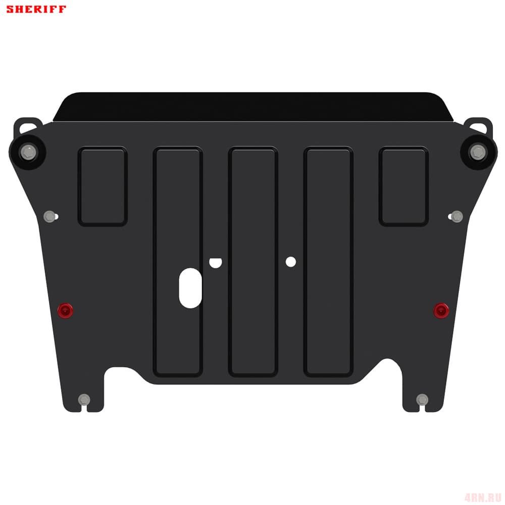 Защита картера Sheriff нужна для сохранности узлов и агрегатов, находящихся на днище авто. Она надежно защитит двигательный отсек вашей машины от повреждений. Также она защищает моторный отсек от влаги, грязи, и предусматривает наличие металлических крыльев, которые выполняют функцию пыльника.