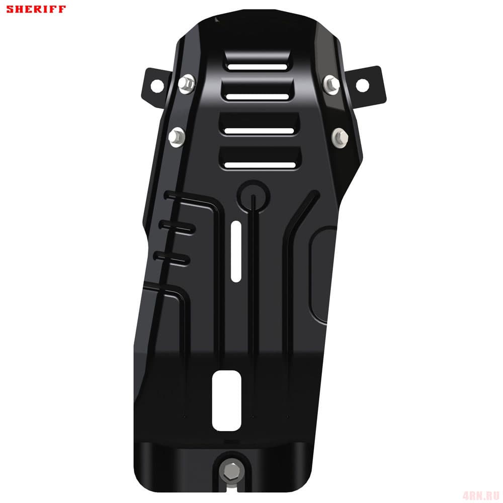 Защита картера Sheriff нужна для сохранности узлов и агрегатов, находящихся на днище авто. Она надежно защитит двигательный отсек вашей машины от повреждений. Также она защищает моторный отсек от влаги, грязи, и предусматривает наличие металлических крыльев, которые выполняют функцию пыльника.