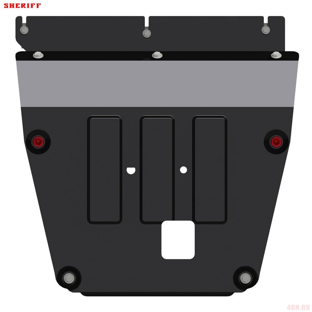 Защита картера Sheriff нужна для сохранности узлов и агрегатов, находящихся на днище авто. Она надежно защитит двигательный отсек вашей машины от повреждений. Также она защищает моторный отсек от влаги, грязи, и предусматривает наличие металлических крыльев, которые выполняют функцию пыльника.