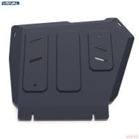 Порошковое окрашивание гарантирует долгий срок службы. А глубокий штамп увеличивает жесткость до 2,5 раз. Также имеется утопленный крепеж для предотвращения срывов. Качественная покраска защиты картера выдерживает 720 часов соляного тумана. Толщина изделия составляет 2-6 мм. Подштамповка в местах крепления предохраняет крепеж от срезания. Деталь спроектирована индивидуально для вашего автомобиля, что позволяет устанавливать ее в штатные места без доработки кузова за 10 мин.