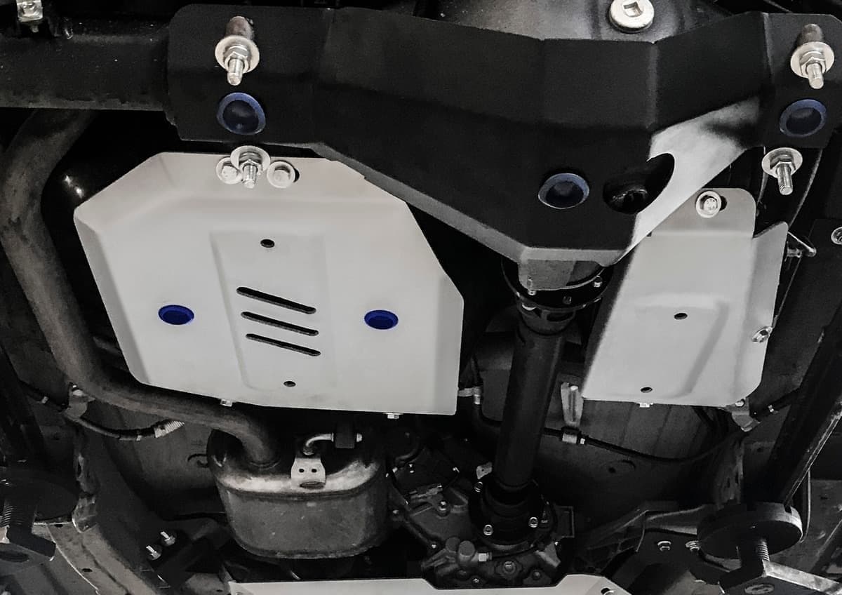 Стойкое порошковое окрашивание позволяет сохранить внешний вид, защитит от царапин, предотвратит коррозию. Также имеется утопленный крепеж для предотвращения срывов. Крепеж не образует с алюминием гальваническую пару. Защита спроектирована индивидуально для автомобиля, что позволяет устанавливать ее в штатные места без доработки кузова за 10 мин.