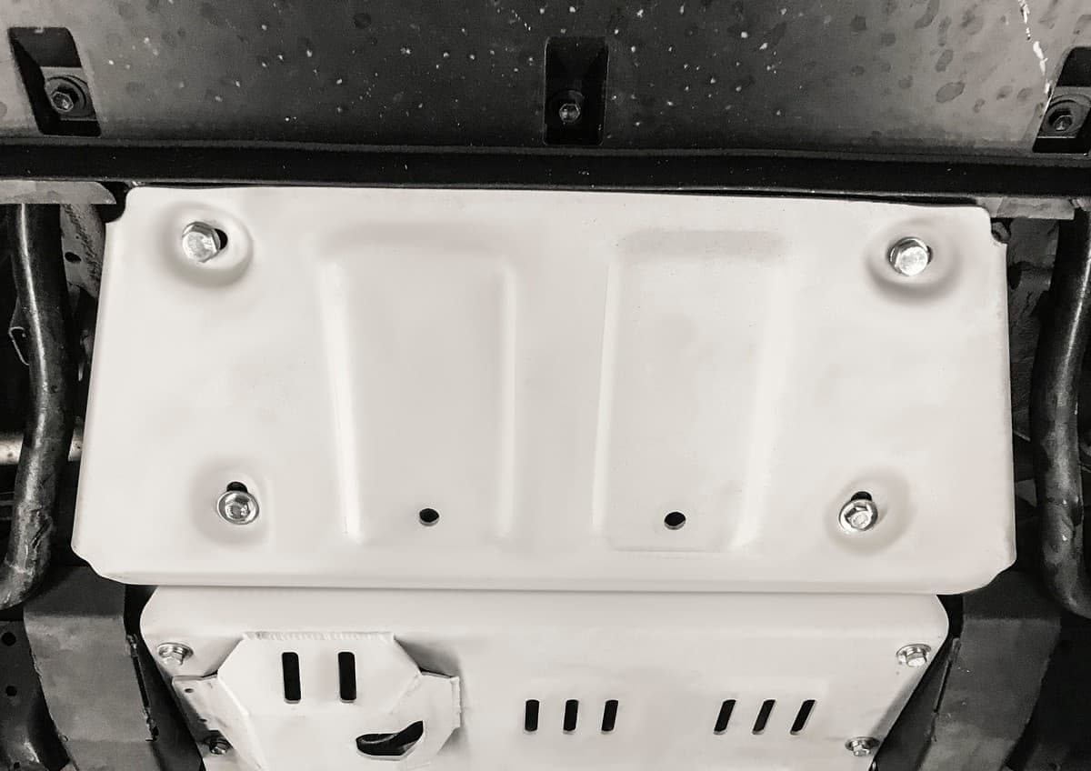 Стойкое порошковое окрашивание позволяет сохранить внешний вид, защитит от царапин, предотвратит коррозию. Также имеется утопленный крепеж для предотвращения срывов. Крепеж не образует с алюминием гальваническую пару. Защита спроектирована индивидуально для автомобиля, что позволяет устанавливать ее в штатные места без доработки кузова за 10 мин.