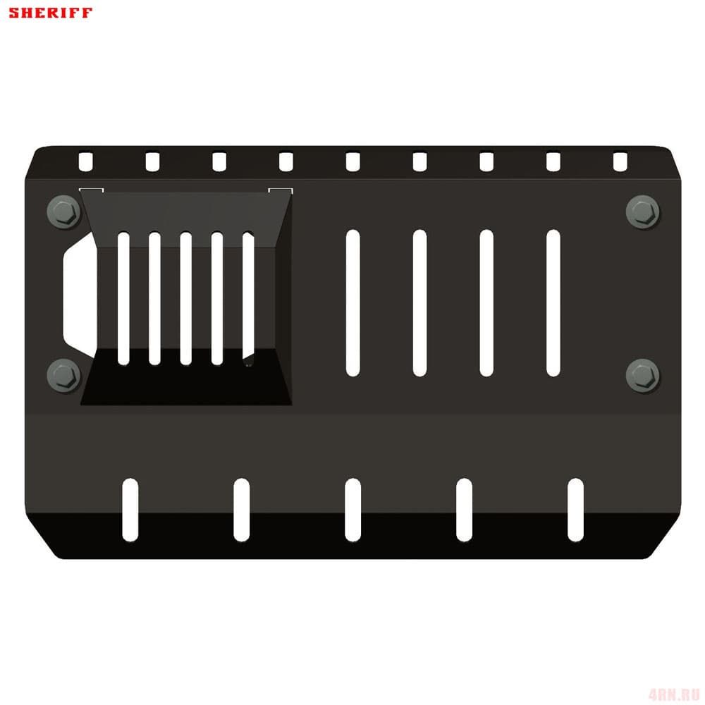 Защита картера Sheriff нужна для сохранности узлов и агрегатов, находящихся на днище авто. Она надежно защитит двигательный отсек вашей машины от повреждений. Также она защищает моторный отсек от влаги, грязи, и предусматривает наличие металлических крыльев, которые выполняют функцию пыльника.