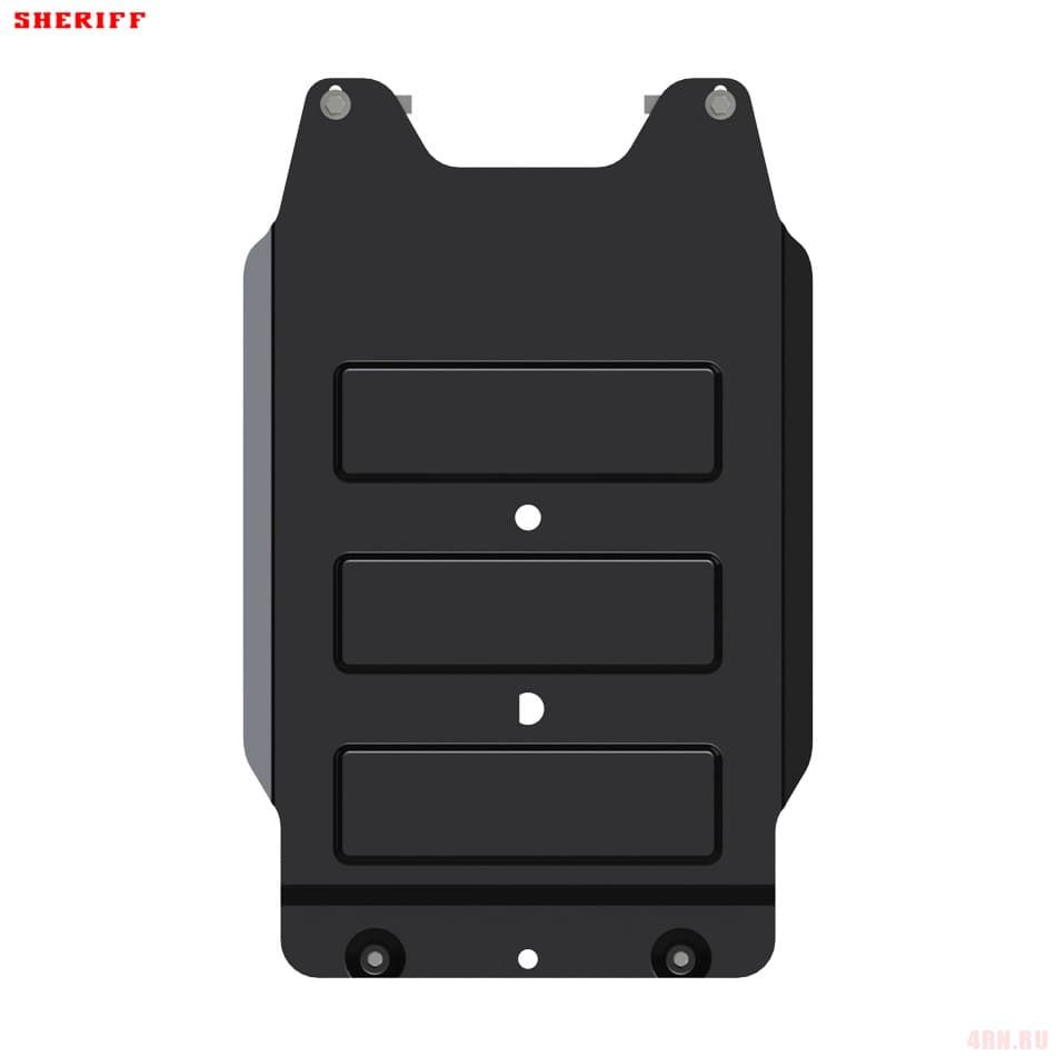 Защита картера Sheriff нужна для сохранности узлов и агрегатов, находящихся на днище авто. Она надежно защитит двигательный отсек вашей машины от повреждений. Также она защищает моторный отсек от влаги, грязи, и предусматривает наличие металлических крыльев, которые выполняют функцию пыльника.