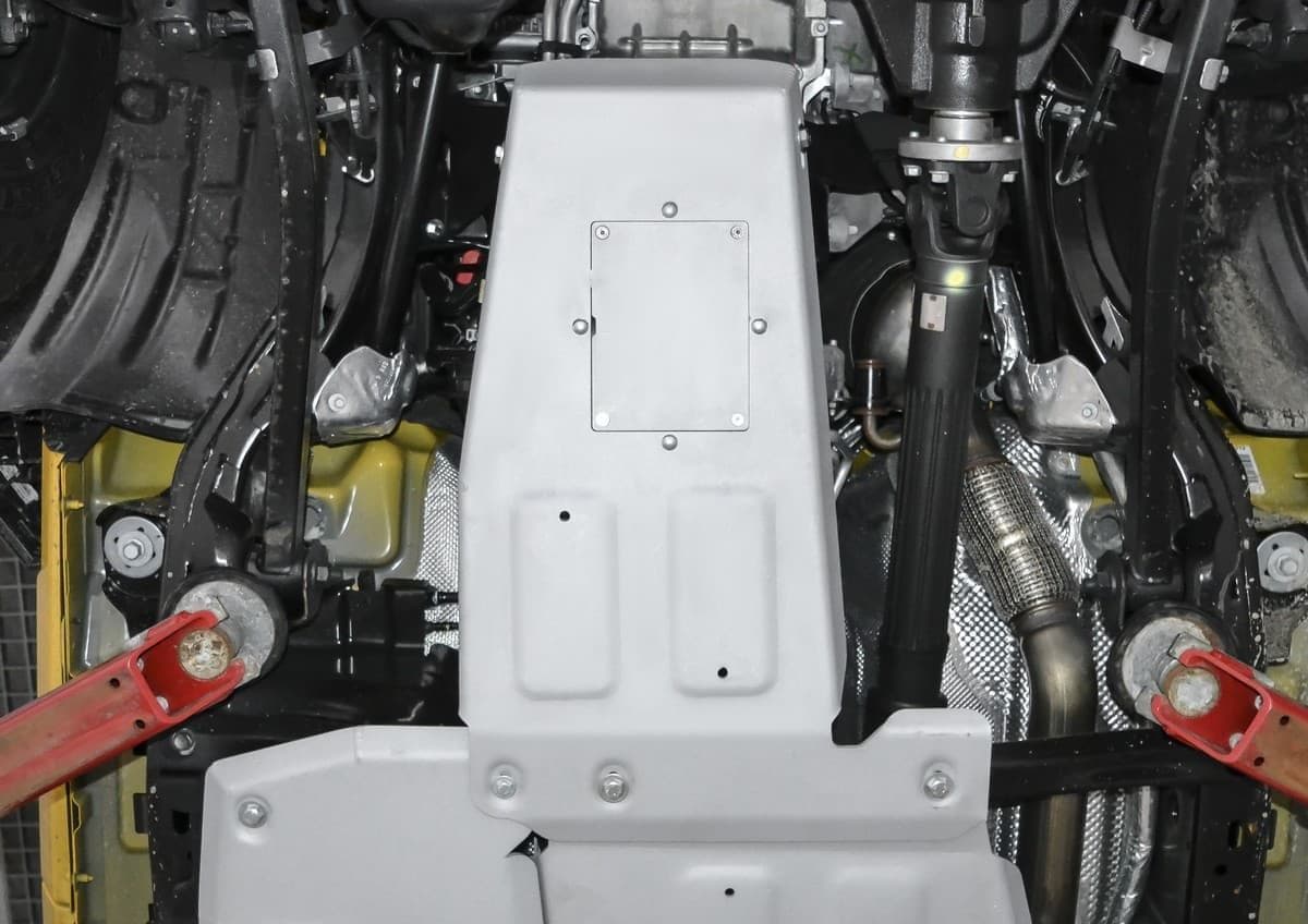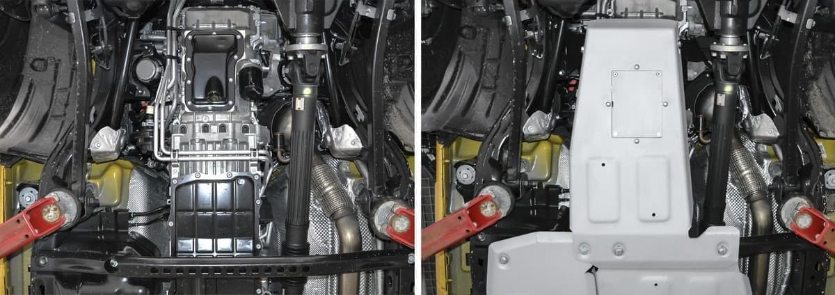 Стойкое порошковое окрашивание позволяет сохранить внешний вид, защитит от царапин, предотвратит коррозию. Также имеется утопленный крепеж для предотвращения срывов. Крепеж не образует с алюминием гальваническую пару. Защита спроектирована индивидуально для автомобиля, что позволяет устанавливать ее в штатные места без доработки кузова за 10 мин.