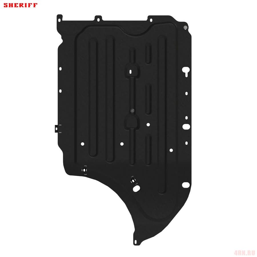 Защита картера Sheriff нужна для сохранности узлов и агрегатов, находящихся на днище авто. Она надежно защитит двигательный отсек вашей машины от повреждений. Также она защищает моторный отсек от влаги, грязи, и предусматривает наличие металлических крыльев, которые выполняют функцию пыльника.