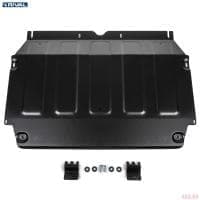 Порошковое окрашивание гарантирует долгий срок службы. А глубокий штамп увеличивает жесткость до 2,5 раз. Также имеется утопленный крепеж для предотвращения срывов. Качественная покраска защиты картера выдерживает 720 часов соляного тумана. Толщина изделия составляет 2-6 мм. Подштамповка в местах крепления предохраняет крепеж от срезания. Деталь спроектирована индивидуально для вашего автомобиля, что позволяет устанавливать ее в штатные места без доработки кузова за 10 мин.