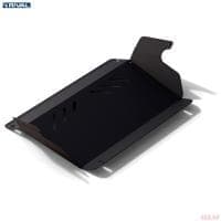 Порошковое окрашивание гарантирует долгий срок службы. А глубокий штамп увеличивает жесткость до 2,5 раз. Также имеется утопленный крепеж для предотвращения срывов. Качественная покраска защиты картера выдерживает 720 часов соляного тумана. Толщина изделия составляет 2-6 мм. Подштамповка в местах крепления предохраняет крепеж от срезания. Деталь спроектирована индивидуально для вашего автомобиля, что позволяет устанавливать ее в штатные места без доработки кузова за 10 мин.