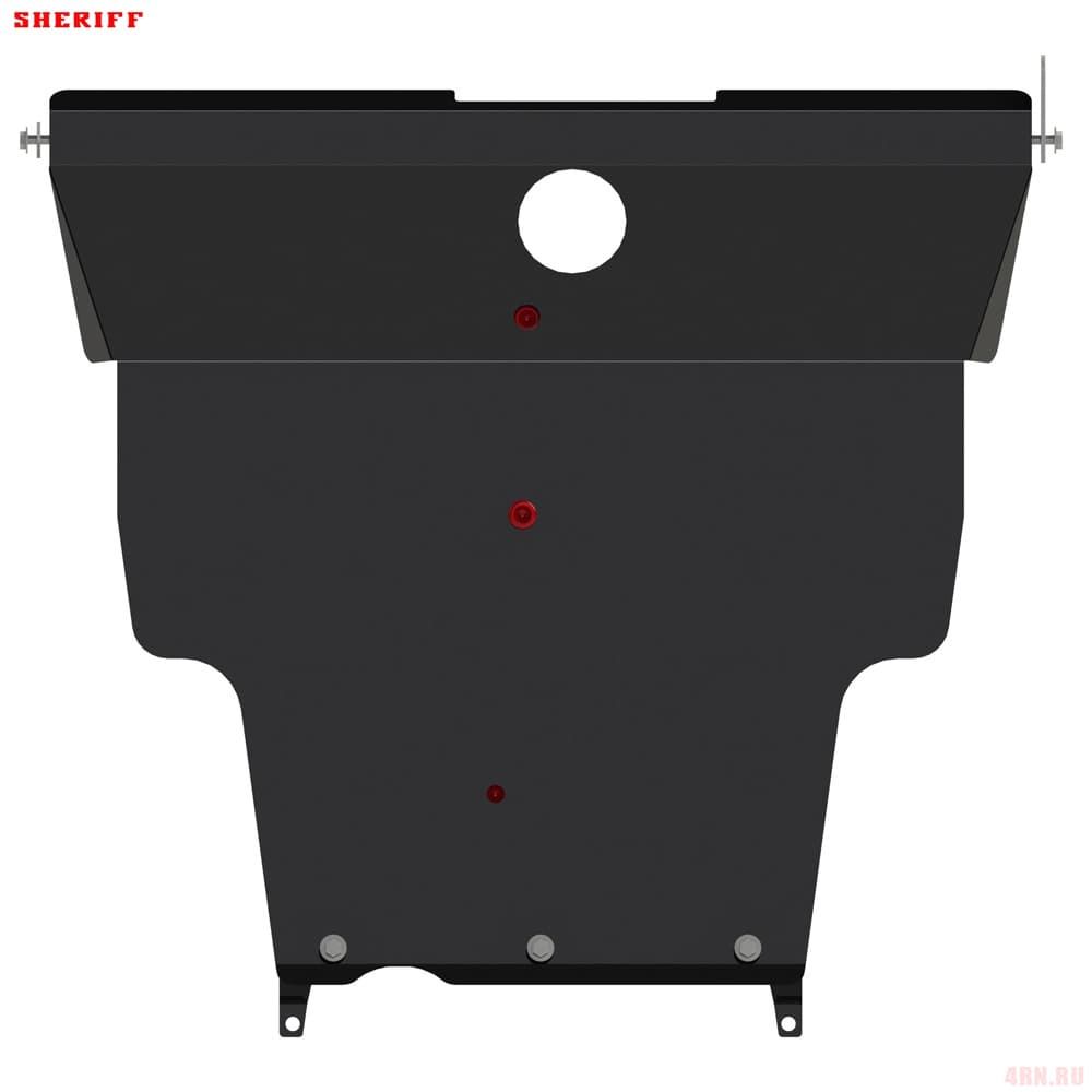 Защита картера Sheriff нужна для сохранности узлов и агрегатов, находящихся на днище авто. Она надежно защитит двигательный отсек вашей машины от повреждений. Также она защищает моторный отсек от влаги, грязи, и предусматривает наличие металлических крыльев, которые выполняют функцию пыльника.