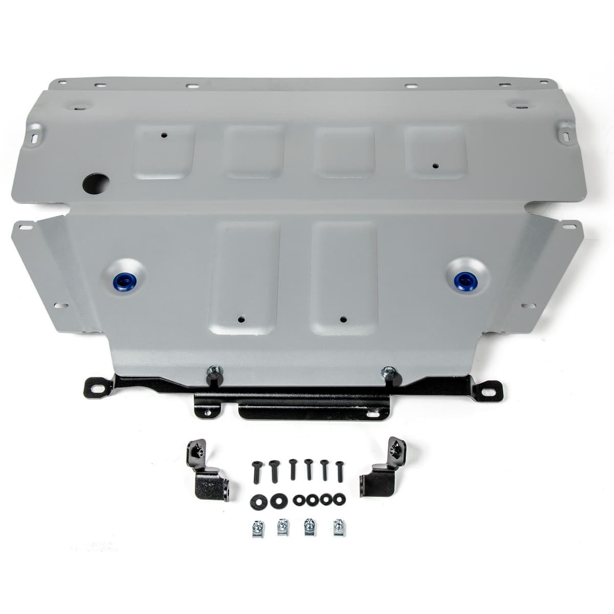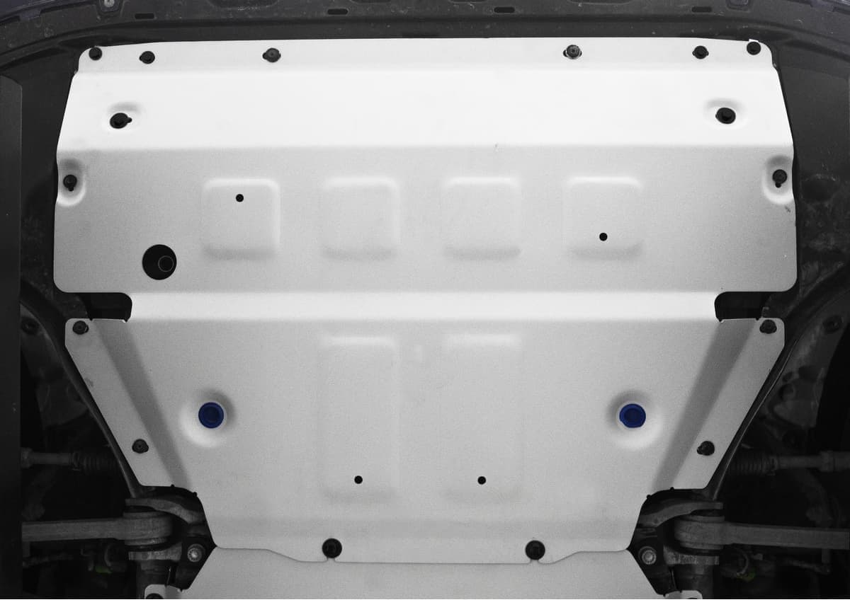 Стойкое порошковое окрашивание позволяет сохранить внешний вид, защитит от царапин, предотвратит коррозию. Также имеется утопленный крепеж для предотвращения срывов. Крепеж не образует с алюминием гальваническую пару. Защита спроектирована индивидуально для автомобиля, что позволяет устанавливать ее в штатные места без доработки кузова за 10 мин.